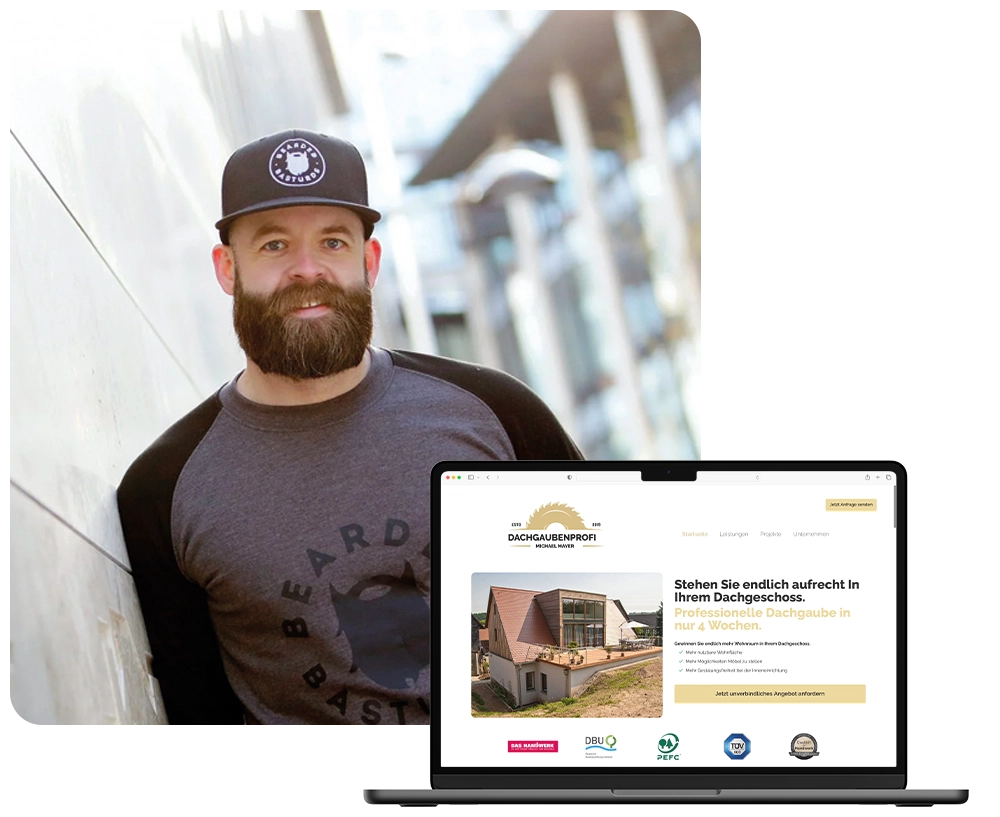 Mit krähatives handwerk erhältst du in nur 4 Wochen eine neue Website inklusive Akquise-Kanal der dir automatisiert lukrative Anfragen deiner Wunschkunden bringt – ohne viel Aufwand damit zu haben.